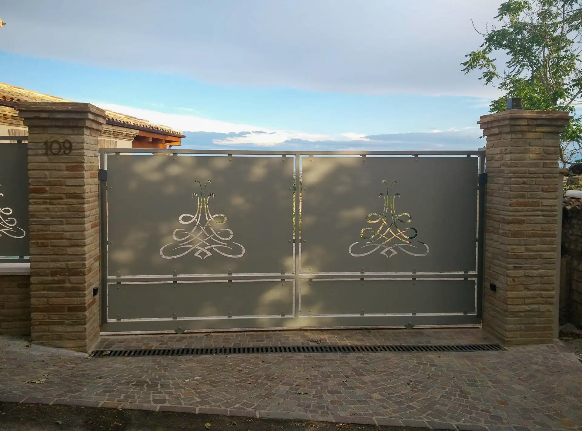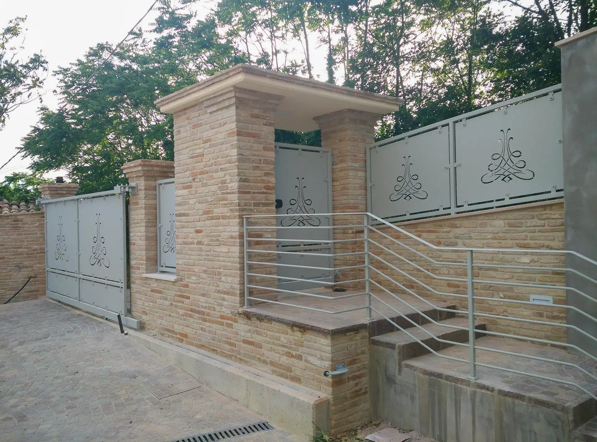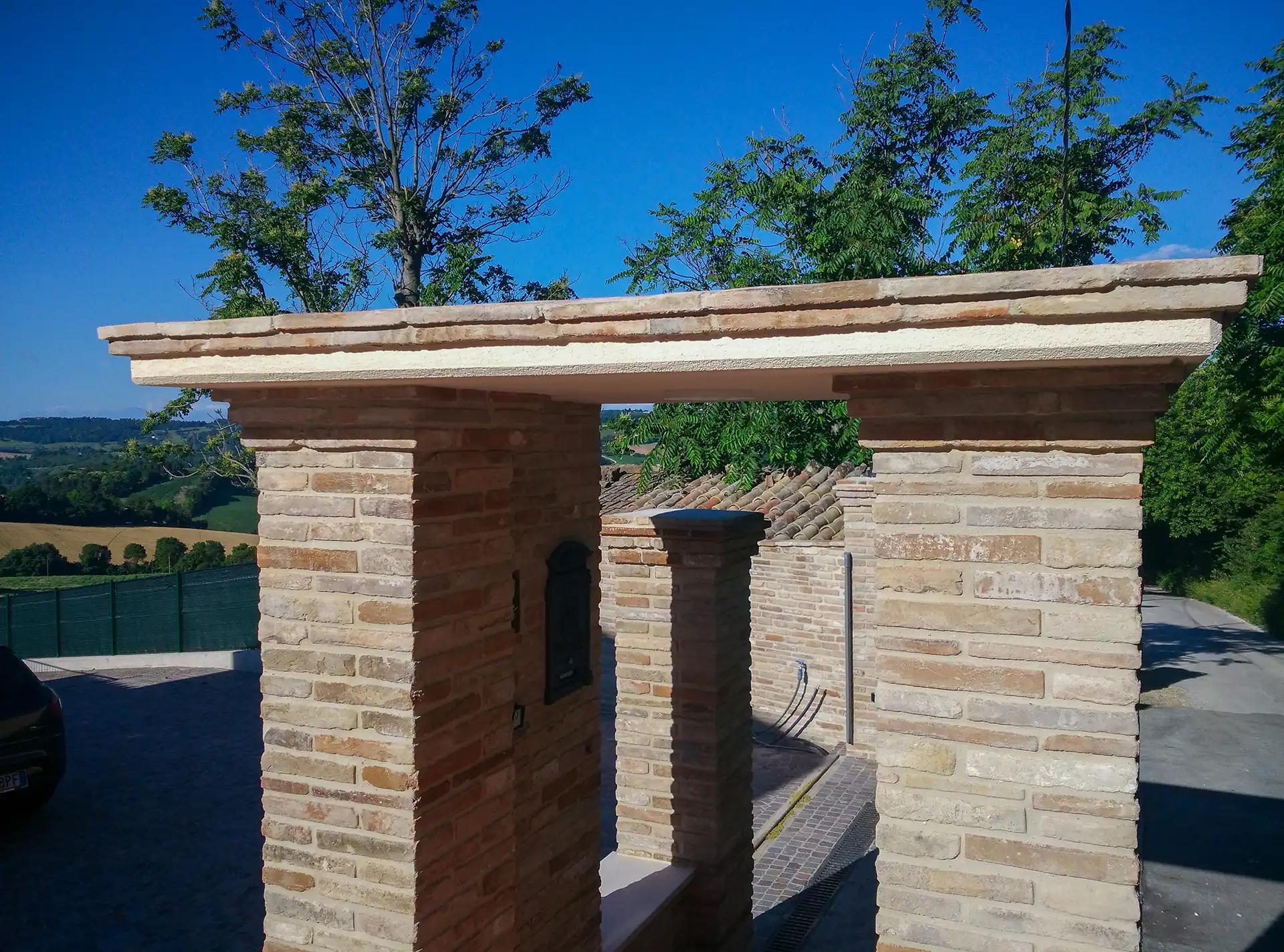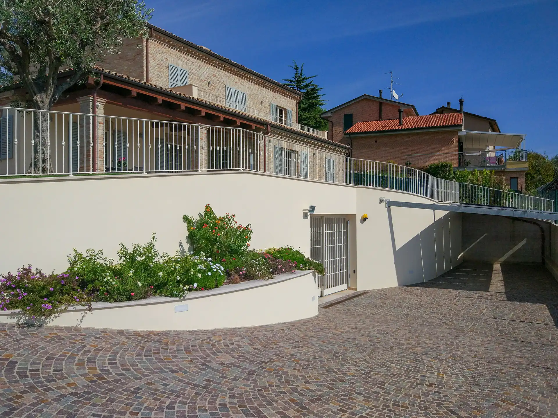 Abbiamo completato l’intervento con eleganti camminamenti e aree carrabili realizzate in porfido naturale, una pietra resistente e perfettamente adatta agli esterni di pregio.