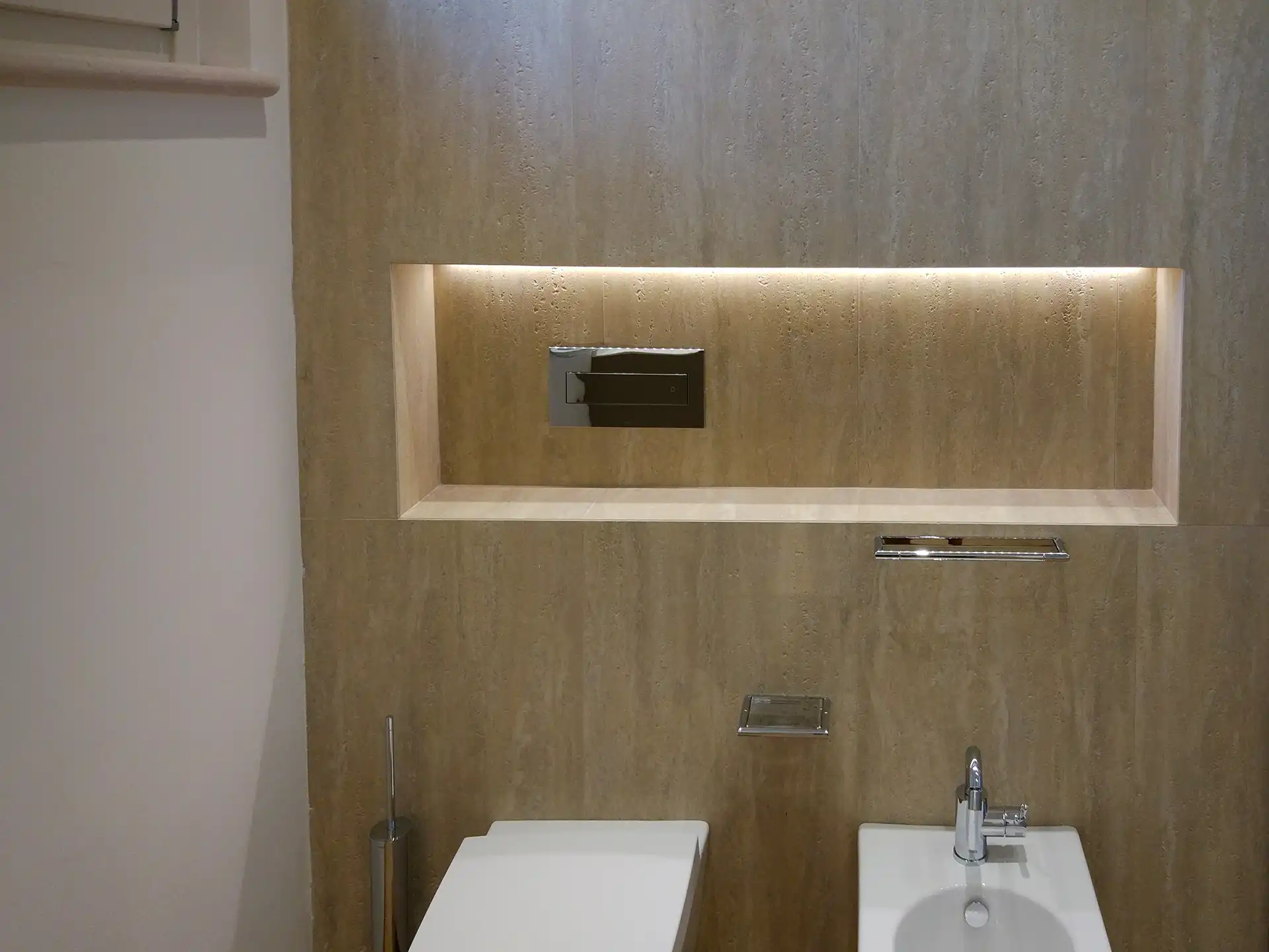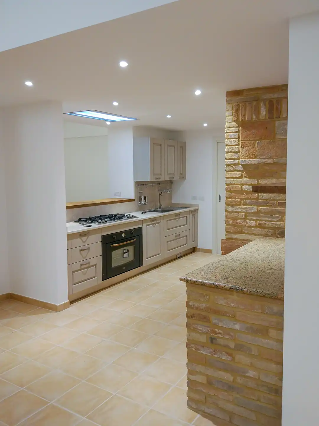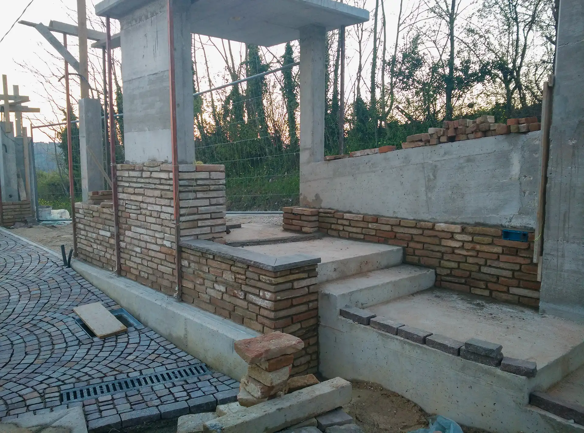 Abbiamo rivestito l’esterno dell’abitazione con mattoni antichi di recupero, posati manualmente con tecnica tradizionale. Un’operazione che richiede precisione e sensibilità storica, per restituire autenticità e pregio alla nuova costruzione.