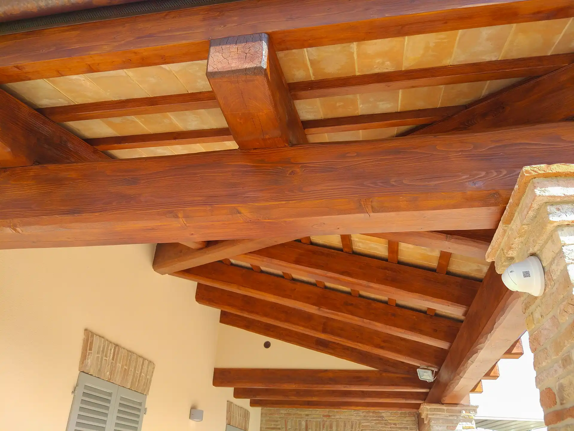 Per la copertura e le strutture orizzontali abbiamo scelto il legno, un materiale naturale, resistente e capace di donare calore agli ambienti. La posa è stata curata nei minimi dettagli per garantire solidità e armonia architettonica.