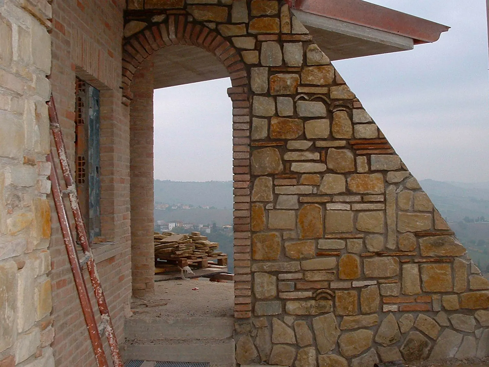 Internamente ed esternamente, abbiamo realizzato superfici a vista utilizzando una combinazione di pietra arenaria dell’entroterra marchigiano e mattoni facciavista di recupero, creando un equilibrio tra rusticità e raffinatezza.