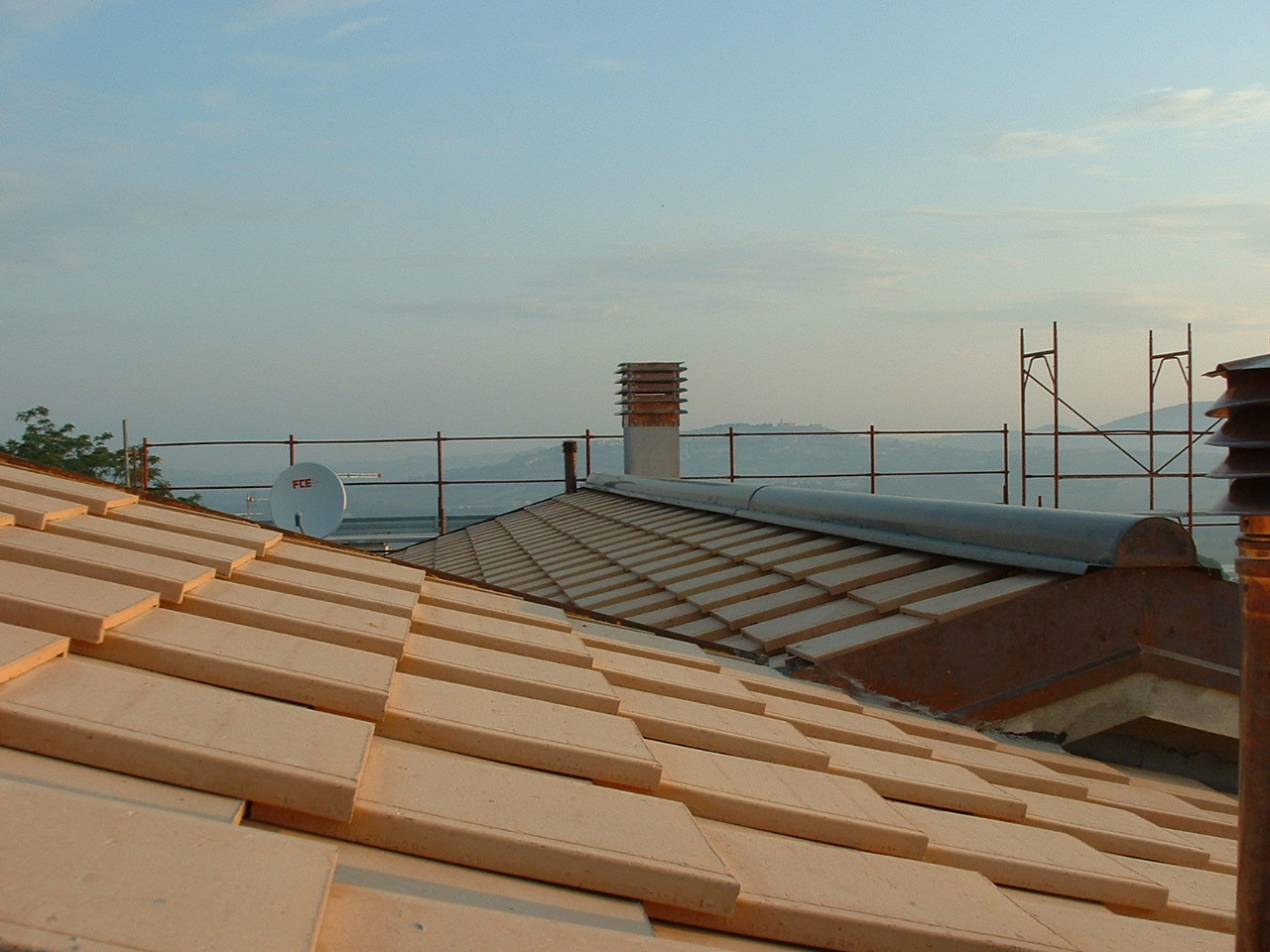 Posa di coppi e tegole secondo il metodo tradizionale romano, su nuovo supporto, per garantire estetica autentica e impermeabilità.