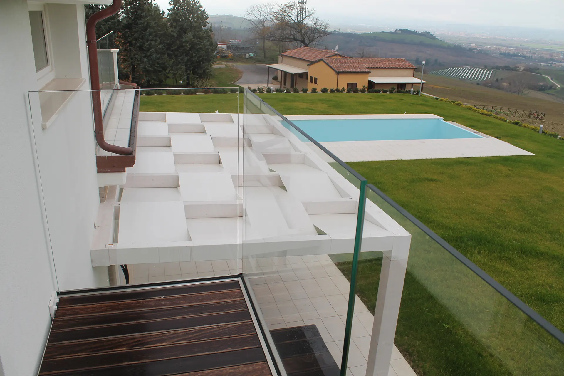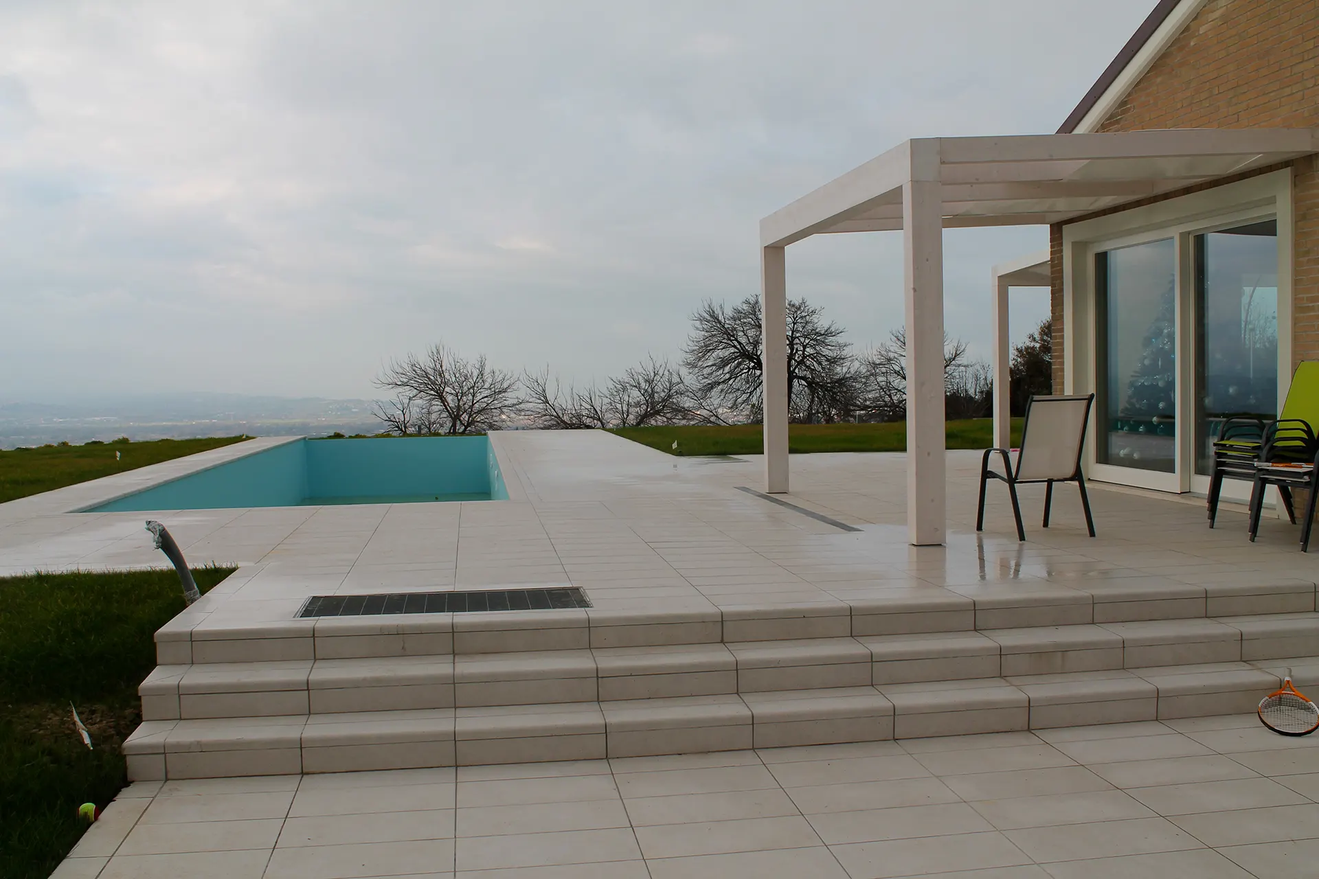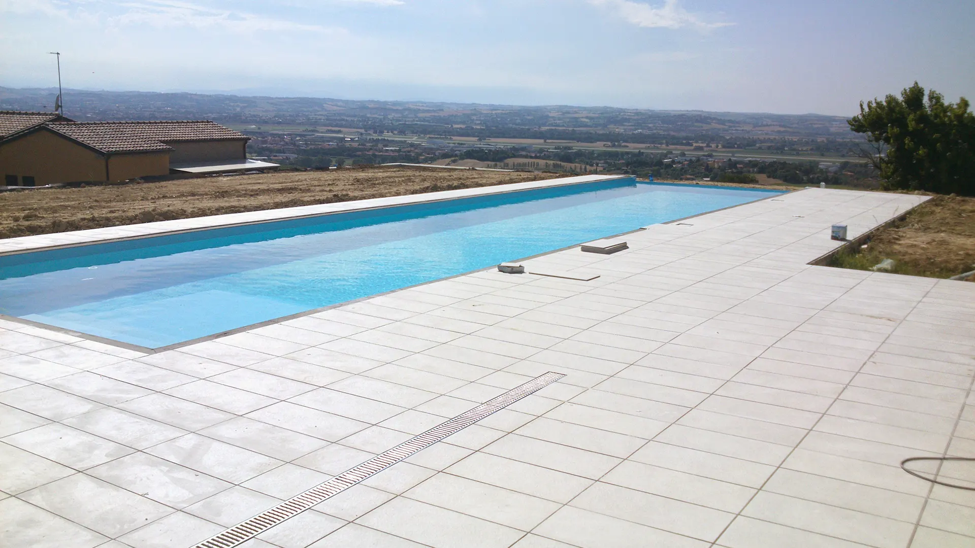 Abbiamo progettato e realizzato una piscina esterna su misura, perfettamente integrata nel paesaggio e pensata come naturale estensione della zona living, per un’esperienza abitativa all’insegna del benessere.